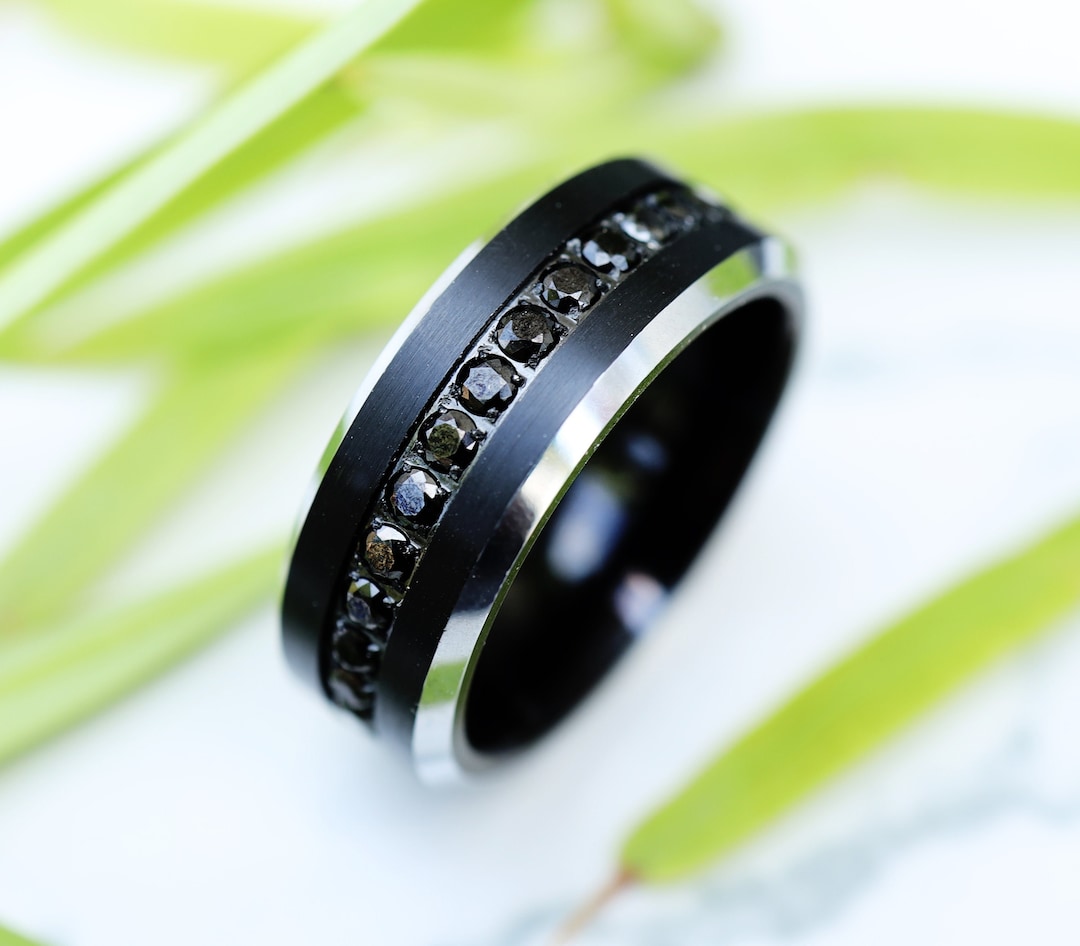 Midnight Spark Black And Silver Wedding Ring With Cubic Zirconias 8mm Shop Rings For Him